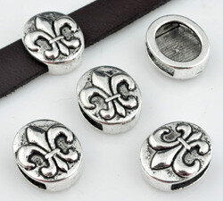 Metalen schuifkralen bewerkt met Franse lelie 16x13x5mm Oudzilverkleur (gat ± 10x2mm)